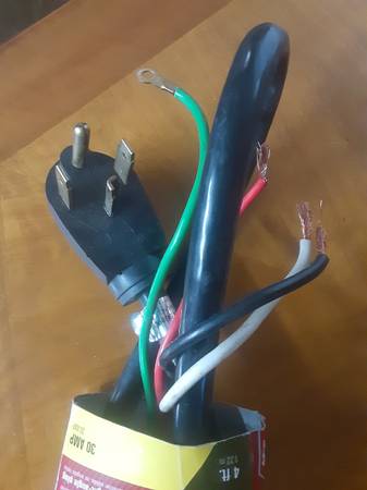 (4) Prong 30 Amp Appliance plug/cord, 5 foot long. New, never used. 3 of the wires don't have connectors on them but I can put them on for you if you need connectors.