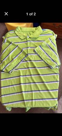 Green polo shirt with stripes $5 I accept PayPal Cash app, Venmo, chime, and cash