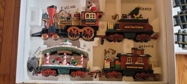 Fully functional set including Engine, Tinder, Candy Dancer Car, and Santas Workshop Caboose. With additional kits 384-3/384-4 including. animated Bakery Car, Log Mill Wood Car, and 4 sections of extra track.