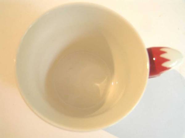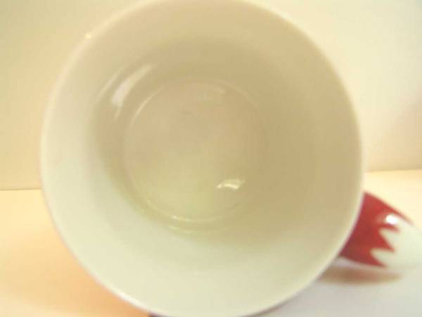 Excellent condition with one super light scratch below the eye. It's very light, but you can kinda see it in the pics as I was in close up mode. You do NOT see it with the naked eye unless you specifically look for it. The "spots" on the cup are light reflection on the high gloss finish. This is in excellent condition, 9.8 out of 10. No cracks, no chips, no crazing, stains or discoloration. Appears to be unused, new old stock.