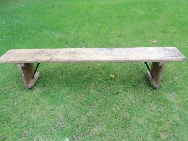 FOR SALE ANTIQUE COUNTRY BENCH. IT LOOKS TO BE MADE OF POPULAR WOOD. BENCH IS 6-FEET LONG, 11-INCHES WIDE, 15 1/2-INCHES HIGH. WOOD IS OVER 1-INCH THICK. LEGS FOLD UP FOR EASY STORING. THESE BENCHES ARE HARD TO FIND. BENCH IS A VERY NICE PRIMATIVE. PRICE IS $85.00. THAT IS A GREAT PRICE FOR THIS BENCH. THEY SELL FOR A LOT MORE IN SHOPS, IF YOU CAN FIND THEM. WOULD MAKE A GREAT GIFT! IF INTERESTED CALL ME AT show contact info