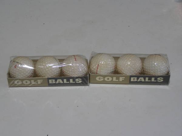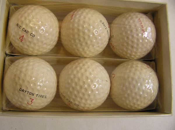 Dayton Tires Golf Balls in original box. Two sealed sleeves of Liquid Center golf balls in the original promotional advertising box. Opposite side of the balls say RIC CAD CO. I have no idea who or what this refers to as googling it produced zero results. If anybody knows more details here, please do let me know. I also found zero examples of these golf balls anywhere, so definitely not a common item! From the looks of them, I would date them from the 1940's to 1960's.