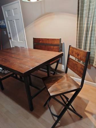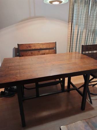 We're selling our counter height dining set. We bought it new from Big Sandy. Very sturdy! It cost over $850 new. Selling for $300 obo. Someone will get a great deal ! It's very nice for dinner and entertaining guests. Playing cards/ games.Pick up only.Thanks. I will send you some more pictures if you're interested. Thank you.