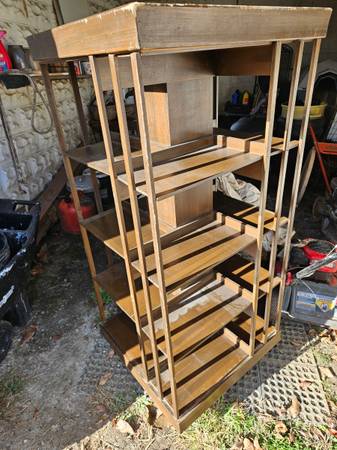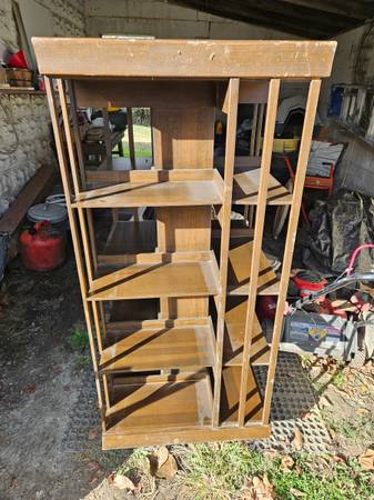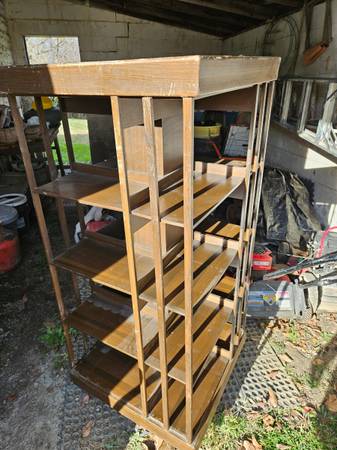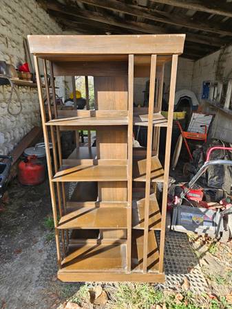 Rotating bookcase. It tilts a bit so it might need some adjustment.