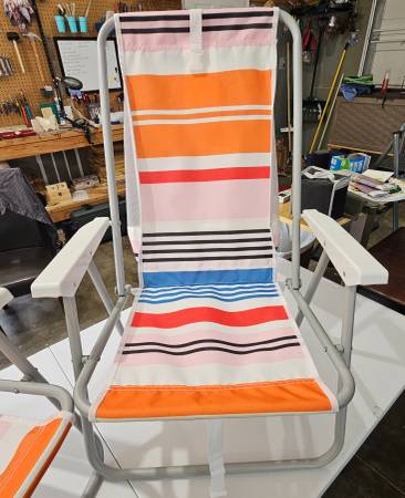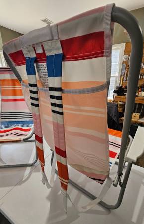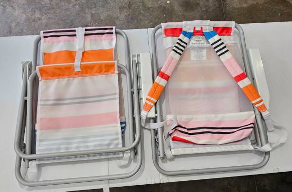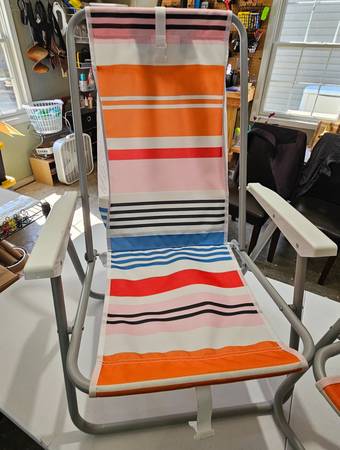 "Two Matching Backpack Beach Chairs NEW-ish - USED ONCE Low Position - 5 Positions Attached Straps & Storage Pouch Lightweight & Aluminum Asking Price for BOTH: $30 - OBO"
