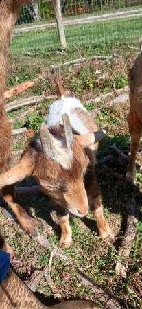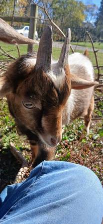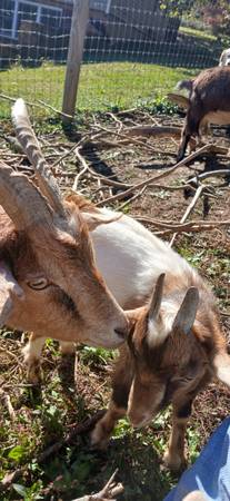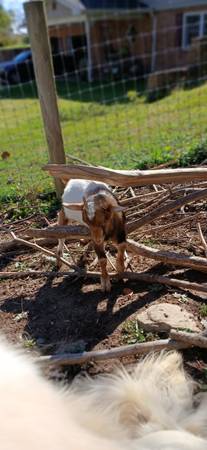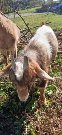this baby was born June 9th so he's just over 4 months now, fully weaned and ready for a new home! I will be castrating him soon unless you wanted him intact, contact me soon in that case! He loves getting loved on and is not afraid of anything. he is used to lot of dogs and goats and random birds around. his friendliness would make him a great pet after he is castrated, and his pretty color and good shape would make him a great show goat or stud buck :) don't hesitate to text or call if you have any questions!