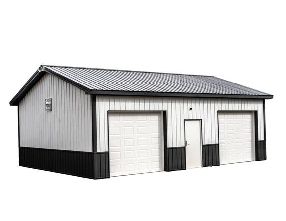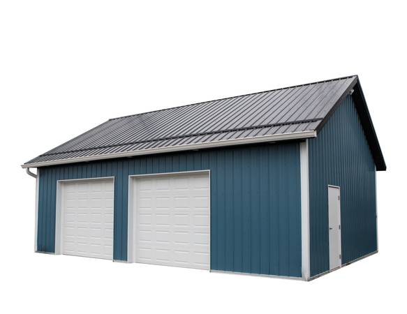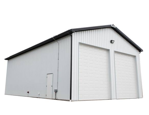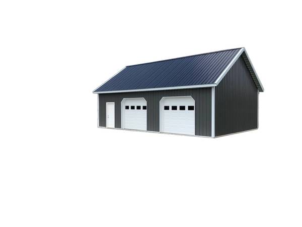 Our featured building is a 40' wide by 60' long by 12' tall garage with 2-garage doors and 1-entry door. Our price will include delivery and installation. This building is built using the best materials in the industry and comes with a 40 year warranty on the exterior steel and a 50 year warranty on the Glu-lam support columns.