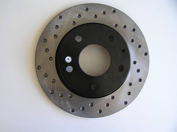 Premium e-coated rotor with advanced metallurgy that greatly reduces pad squeal. Especially effective with higher friction, European style brake pad compounds. Drilled for increased bite, improved looks and better performance. The unique cross-drilling aids with heat and brake dust dispersal; prevents glazing of the pads; adds bite and improves wet and dry braking performance. Built to last; the black e-coating provides protection from corrosion and the high carbon metallurgy (in most applications) offers quieter operation; better crack resistance and increased performance.