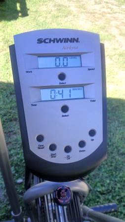 I have a beautiful Schwinn Airdyne exercise bike up for sale in like new condition. Very lightly used and functions perfect in every way. The only way to get a nicer Airdyne than this is to open a new one out of the crate. Workout computer works perfect and just loaded it with brand new batteries. Ready to exercise. This is a dual action bike, meaning it works the upper body as well as the legs and joints. It features fan resistance. The faster you pedal the more resistance there is on the handle bars and the peddles. Giving you an excellent upper body and lower body work out at the same time.